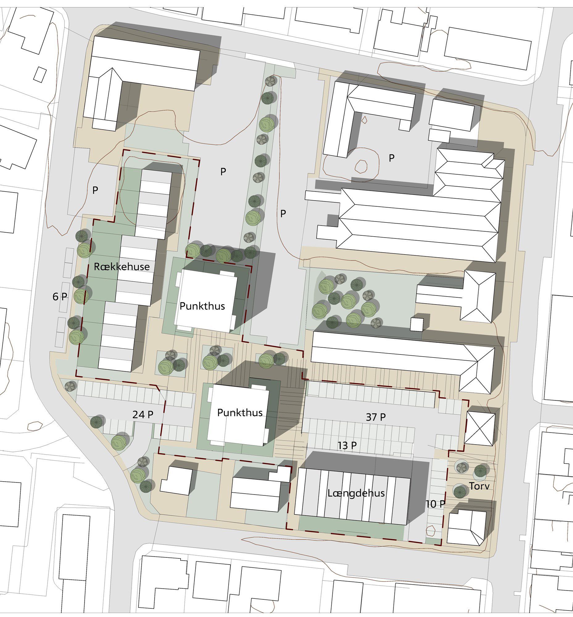 Investorerne vil etablere i alt 49 boliger, som fordeler sig som ni rækkehuse, 30 boliger i to punkthuse og 10 boliger i længdehus.