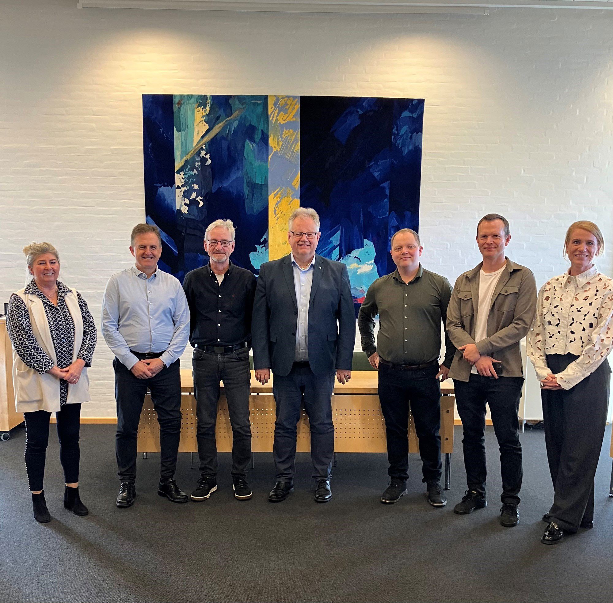 Fra venstre: Hanne Madsen (direktør SSB) Peter Albeck Laursen, (direktør VUF) Peter Mortensen (konsulent SSB), Mogens Chr. Gade ( borgmester), Niklas Mejdahl Jensen (sales director i Scaniro og bestyrelsesmedlem, DI Aalborg), Henrik Marcher Larsen (fagleder for Lokal og Regional Erhvervspolitik, DI), Mette Greisen Damsgaard, (Erhvervs- og turistchef).